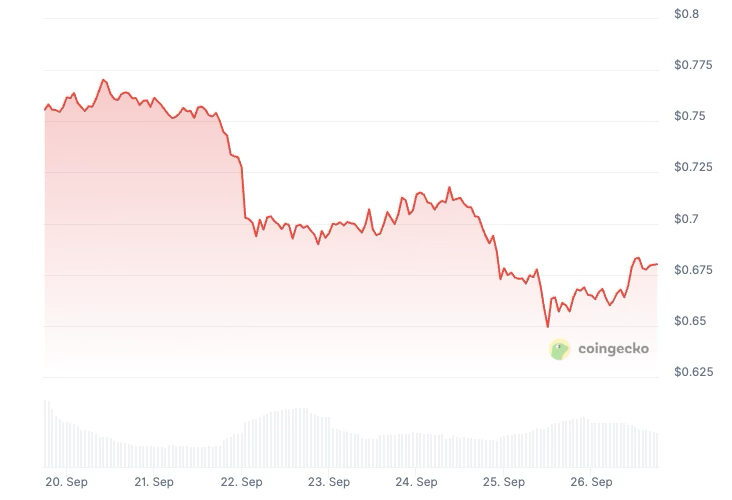 If bulls manage to reclaim $0.6876, short-term relief could push price toward $0.70, though rejection at current levels could drive another retest of $0.6547 and $0.6424.